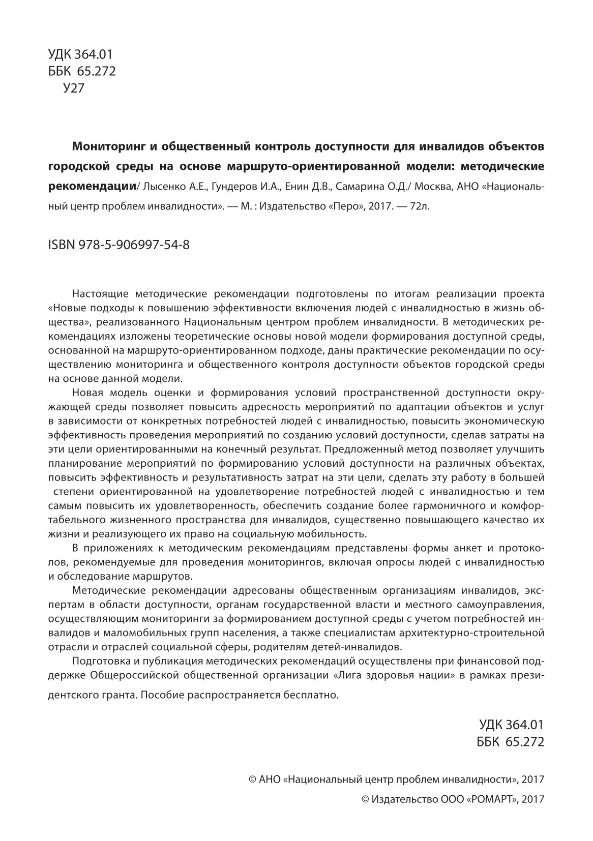 Мониторинг и общественный контроль доступности для инвалидов объектов городской среды на основе маршруто-ориентированной модели: методические рекомендации